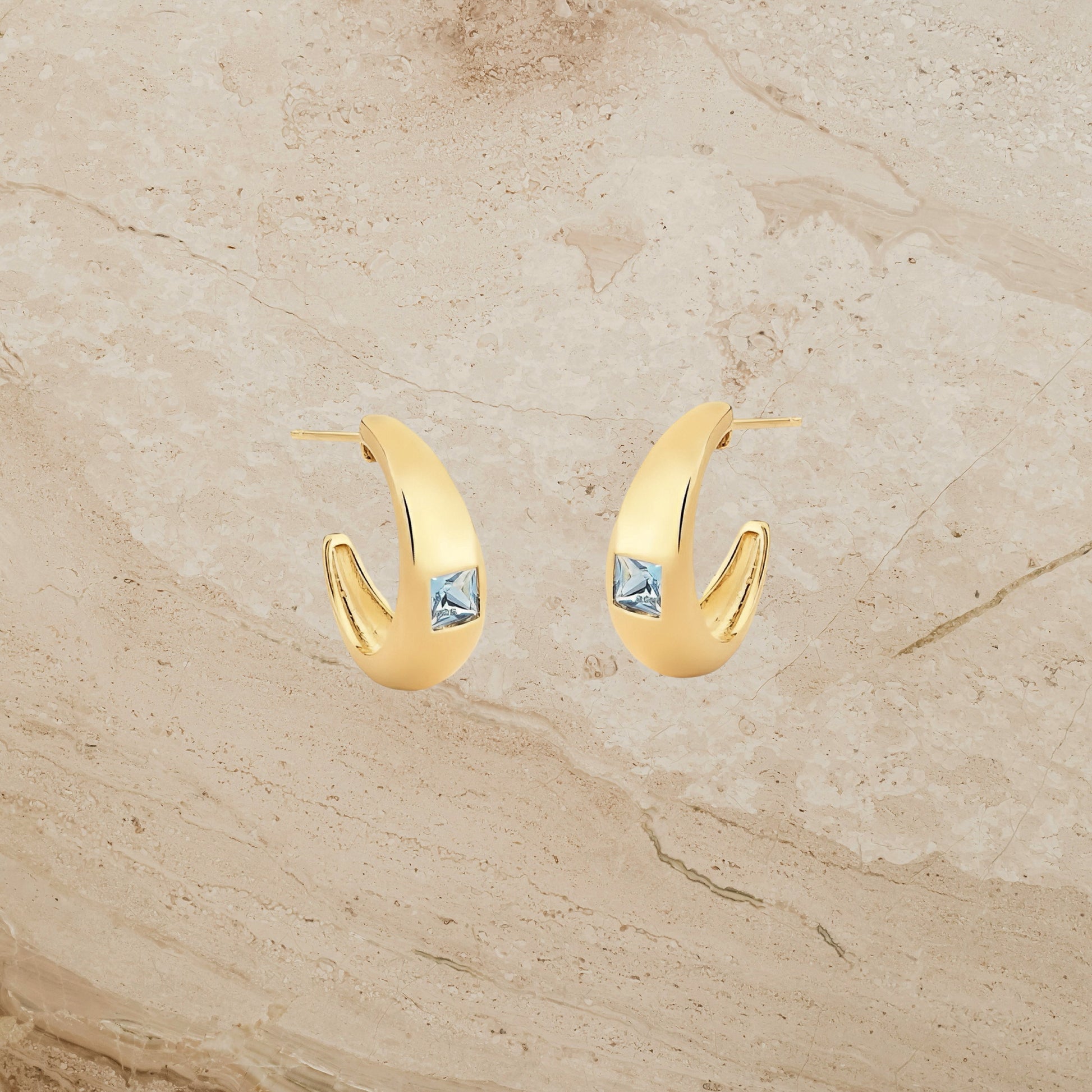 Elevate your everyday look with these sculptural hoop studs featuring a sleek modern curve and a soft blue accent at the center. Their smooth, high-shine silhouette gives them an elegant, understated luxury vibe — perfect for minimalist lovers who still want a touch of color.