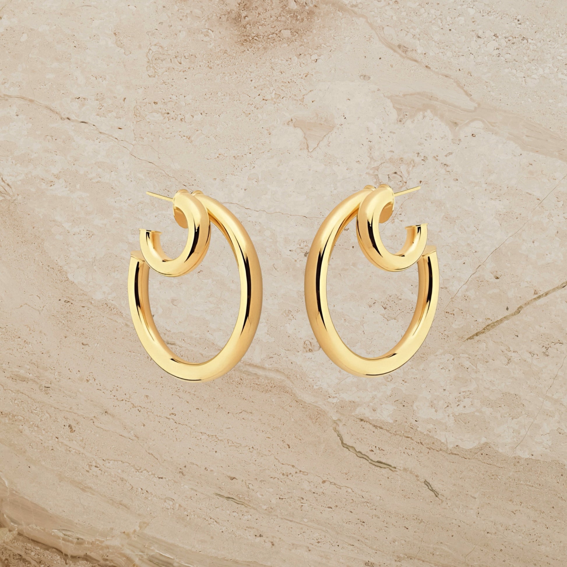 Modern, fluid, and effortlessly chic — our Double Hoop Sculpted Earrings elevate any look with their contemporary silhouette. Each hoop curves into a seamless interlocking design, creating a bold yet minimal statement that feels polished and easy for everyday wear.